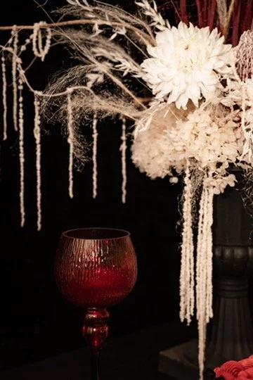 After scouting several locations, we selected a venue that, while featuring exposed industrial ceilings that initially didn’t fit our vision, turned out to be perfect. We transformed the space by draping fabrics strategically around the venue, adding an element of drama and creating designated photo op areas that enhanced the gallery's dreamy and romantic feel. Auram Studios played a crucial role in achieving this atmosphere by assisting in the decor shopping and setup, focusing on elements like pillar candles to amplify the ambience.